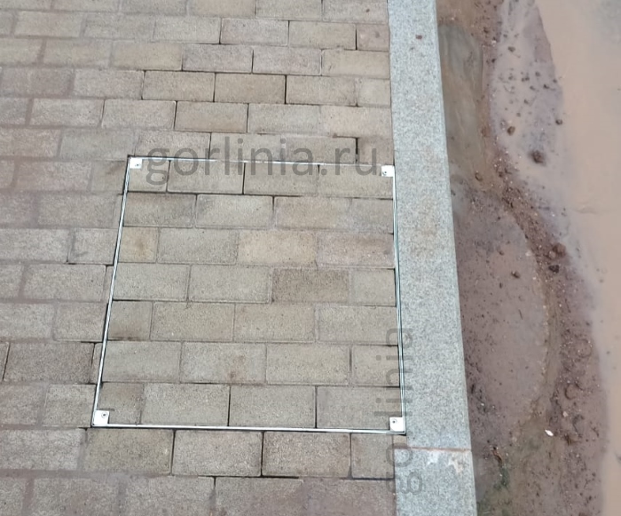 В зависимости от уличного покрытия ванночка глубиной 100 мм.