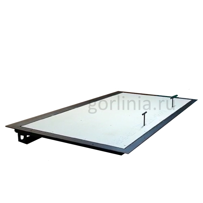 Коробка погружается в проем на высоту чистовой отметки пола и крепится анкерами в торец перекрытия по контуру. Для удобства фиксации закажите вертикальные крепежные полосы или уголки с нахлестом на плиту. Полотно образует собой продолжение пола с единой финишной отделкой всего помещения.