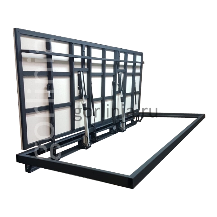 P.S. До установки и облицовки допускаются перекосы рамы и некорректная работа механизма (подвисание привода в полузакрытом состоянии из-за газпатронов), так как каркас не выставлен, не закреплен и не нагружен, а усилие подъемников рассчитано на дополнительный вес напольного покрытия на полотне двери.