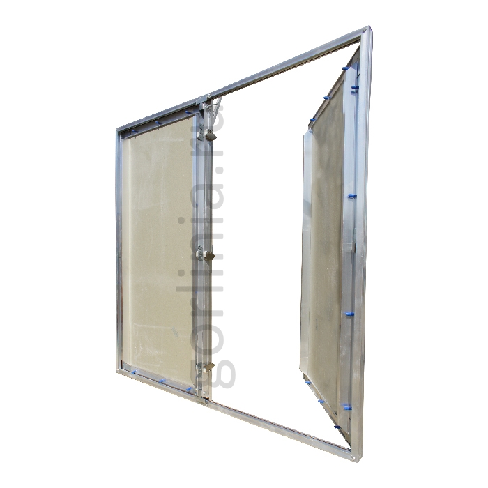 Рамая крепится в каркас вертикальной перегородки, выставляется в уровень финишного слоя, декорируется материалом общей отделки поверхности. Маяками служит профиль полотна, заполненного гипсоволокном.