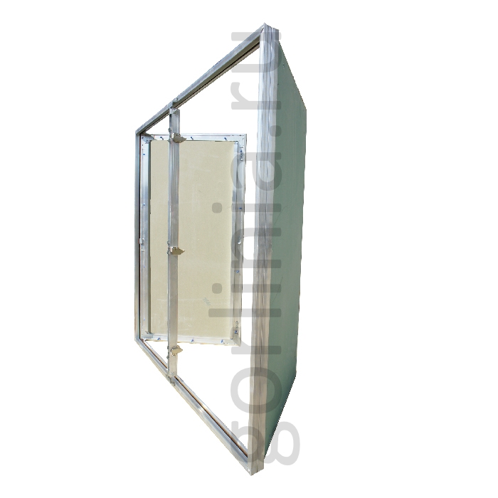 Конструкция крепится в каркас перегородки, выставляется в уровень финишного слоя, далее декорируется материалом общей отделки поверхности. Маяками служит профиль полотна, заполненного гипсоволокном.