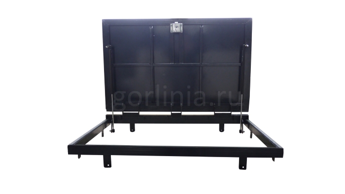 Рама без наличников выставляется в существующем отверстии 80*120 см с допусками, крепится в перекрытии через вертикальные пластины даже когда Ваш ремонт закончен и пол выложен керамогранитом или настелена ламинированная доска.